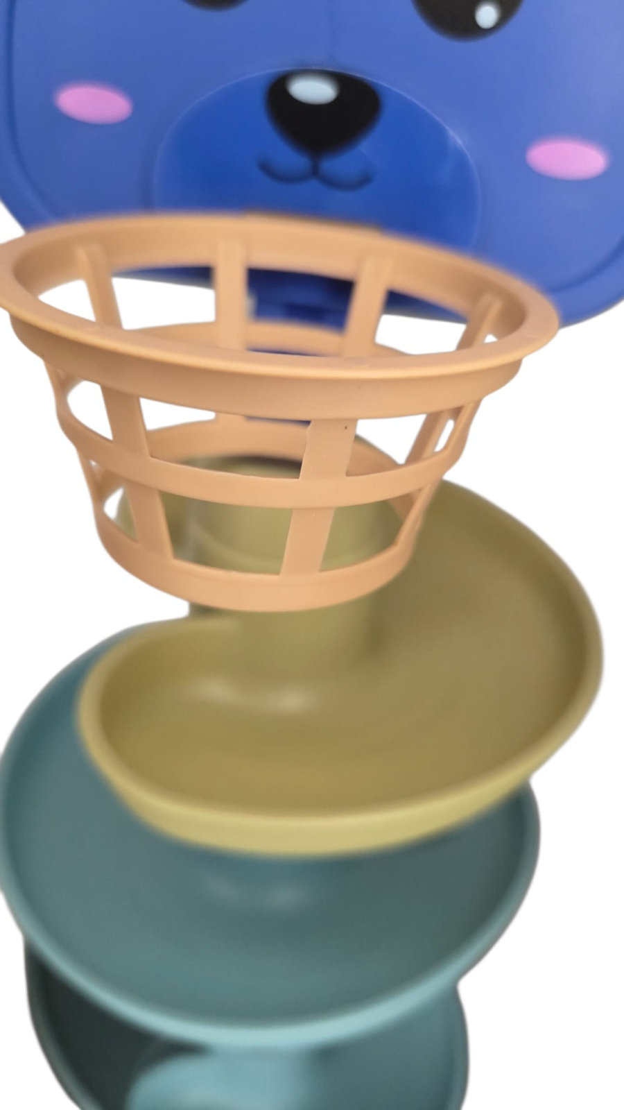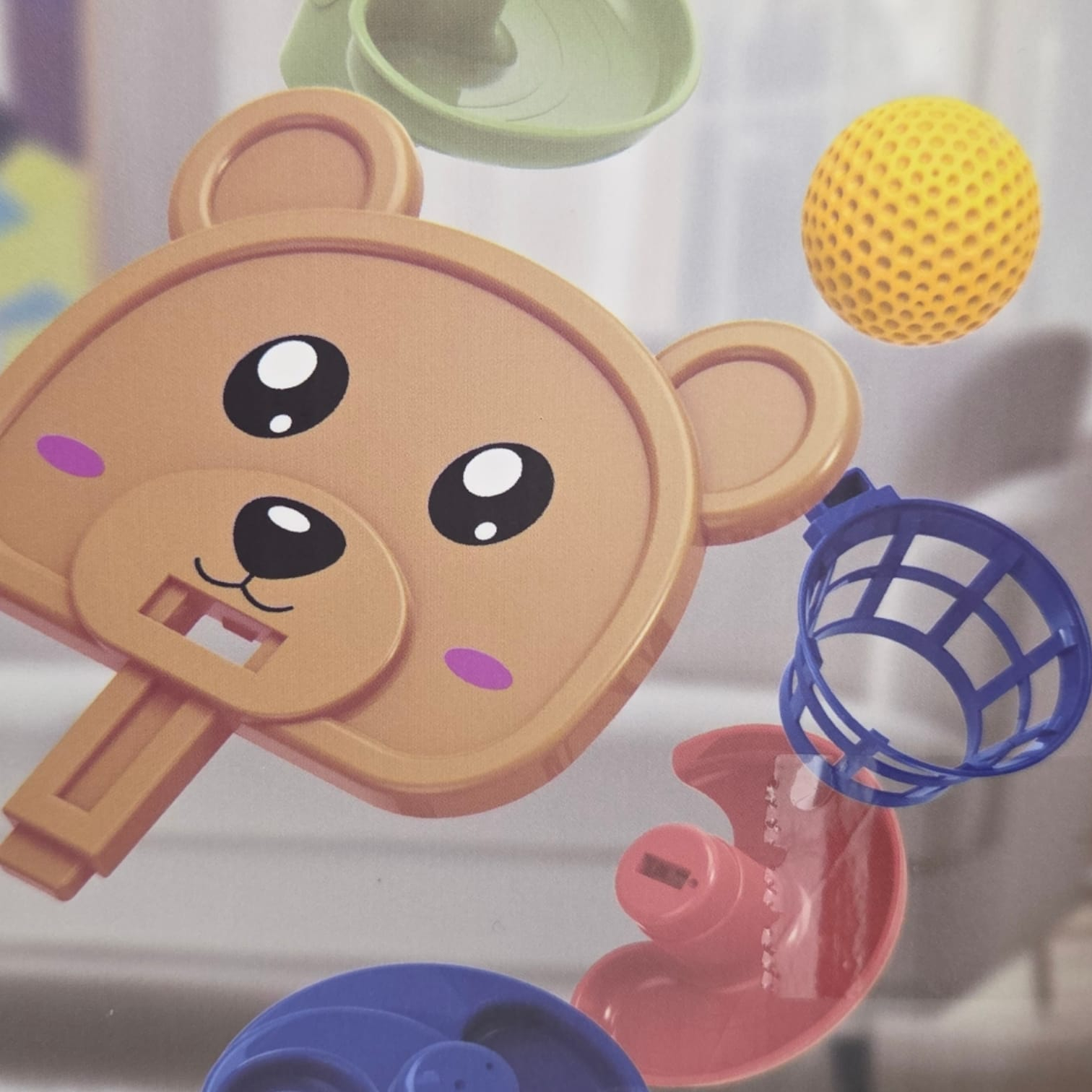 Jocul presupune aruncarea bilelor în coșul superior, urmărind apoi deplasarea acestora pe circuit. Această activitate contribuie la dezvoltarea coordonării mână-ochi, a motricității fine, a atenției și a capacității de concentrare, ajutând copilul să înțeleagă relația cauză–efect într-un mod natural.