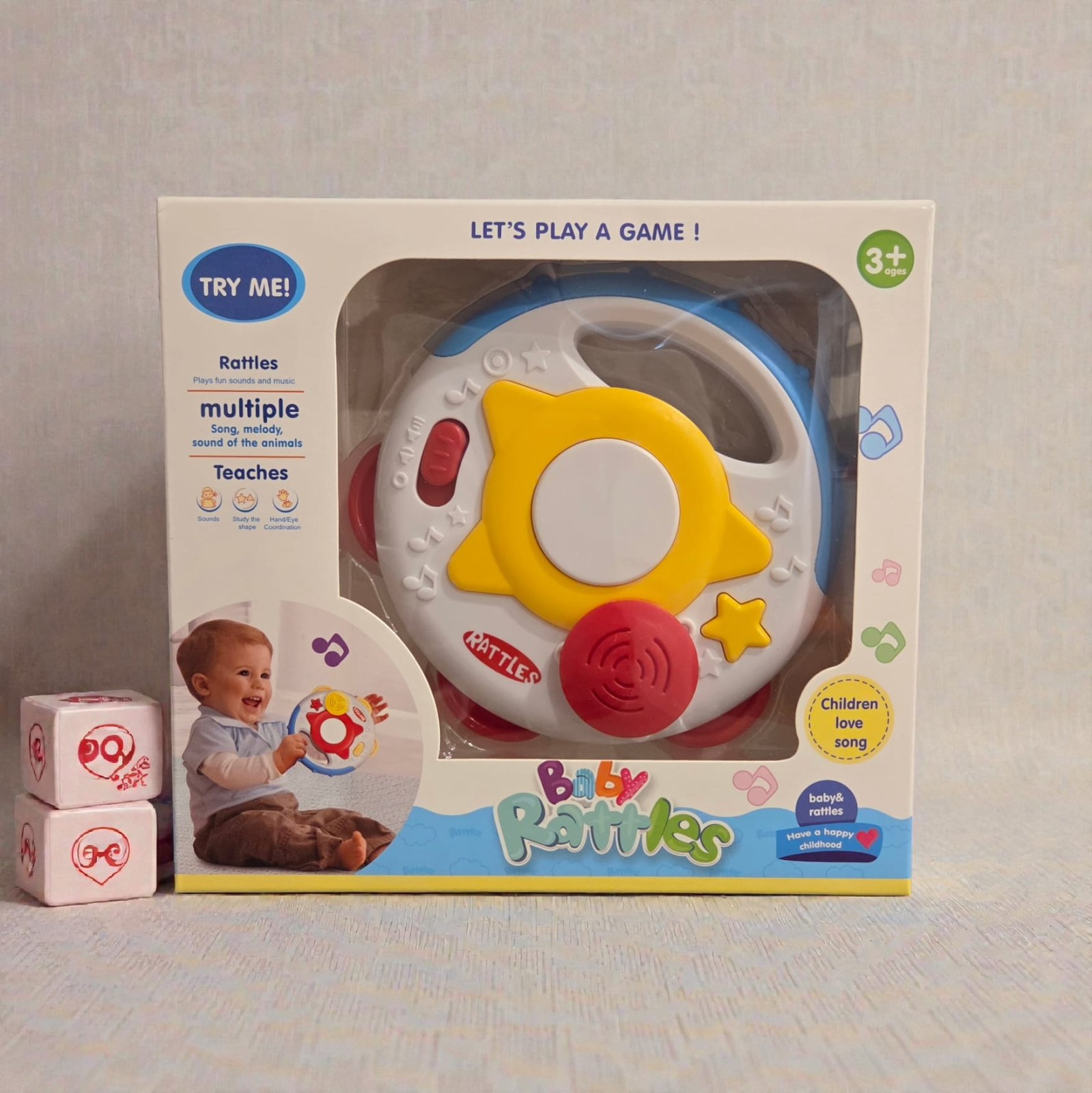 Jucăria muzicală tip tamburină este creată special pentru cei mici, oferind o experiență de joacă interactivă care stimulează simțurile și motricitatea fină. Prin apăsarea butoanelor, copilul declanșează sunete plăcute, descoperind ritmul și relația cauză–efect într-un mod natural și distractiv.