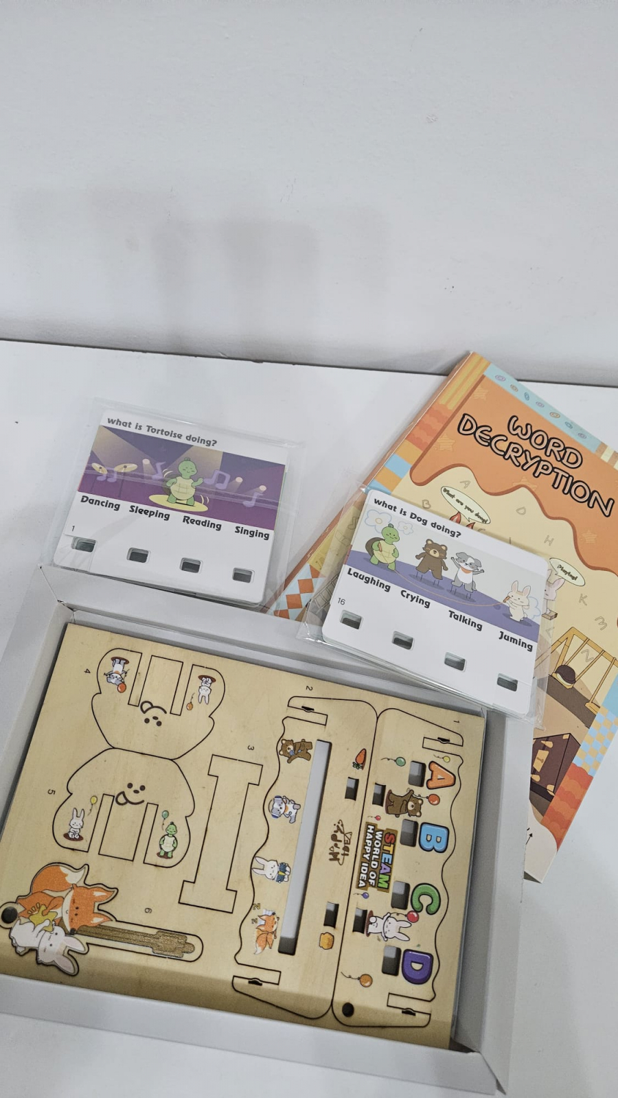 Fabricat din lemn durabil și carduri cartonate, jocul prezintă desene animate colorate care captează atenția celor mici, făcând învățarea o activitate plăcută și interactivă. Recomandat pentru copii cu vârste între 3 și 6 ani, acest joc este ideal pentru activități educative atât acasă, cât și în grădinițe, sprijinind dezvoltarea timpurie a competențelor lingvistice.