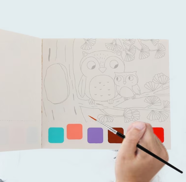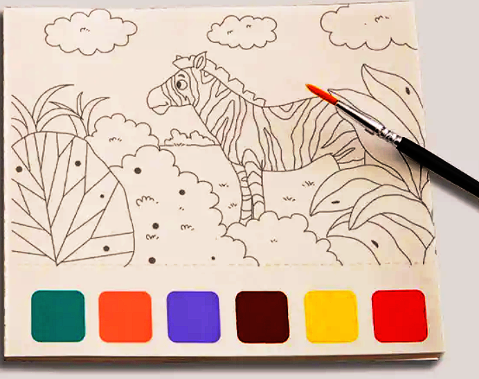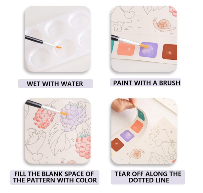 Tot ce trebuie este puțină apă și pensula inclusă, iar cei mici pot începe imediat să creeze. Hârtia este groasă și special concepută pentru pictura cu apă, iar culorile se usucă rapid, făcând activitatea curată și accesibilă oriunde.