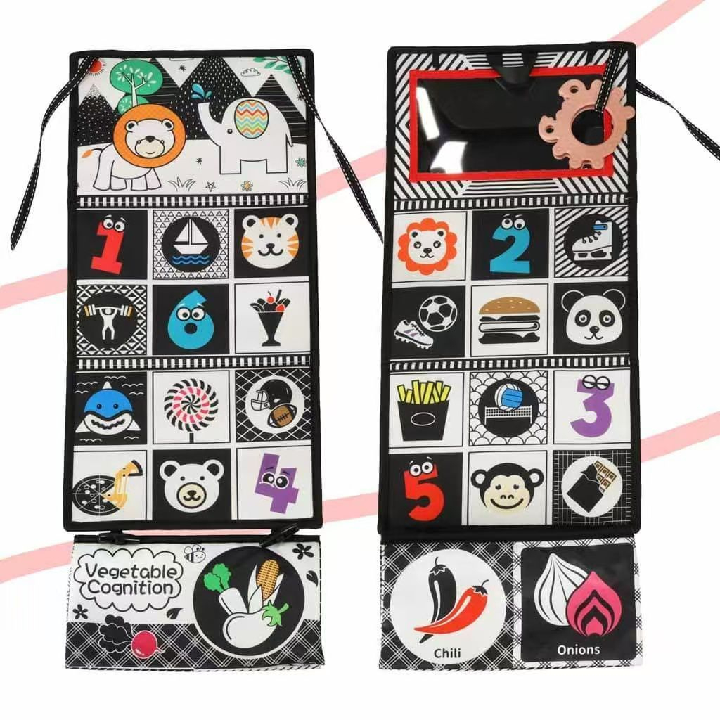 Culorile alb-negru și nuanțele vii sunt special alese pentru a stimula vederea în dezvoltare a bebelușilor. Eticheta fosnitoare, texturile diferite și cleștișorul ajută la exersarea simțului tactil și la dezvoltarea abilităților motorii fine.