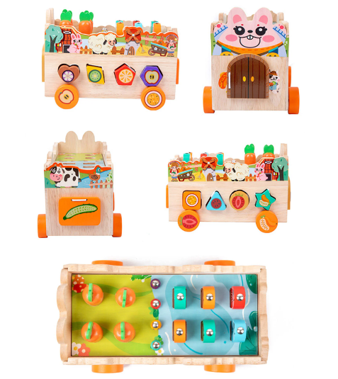 Mașinuță multifuncțională de sortare – Jucărie educativă Montessori din lemn