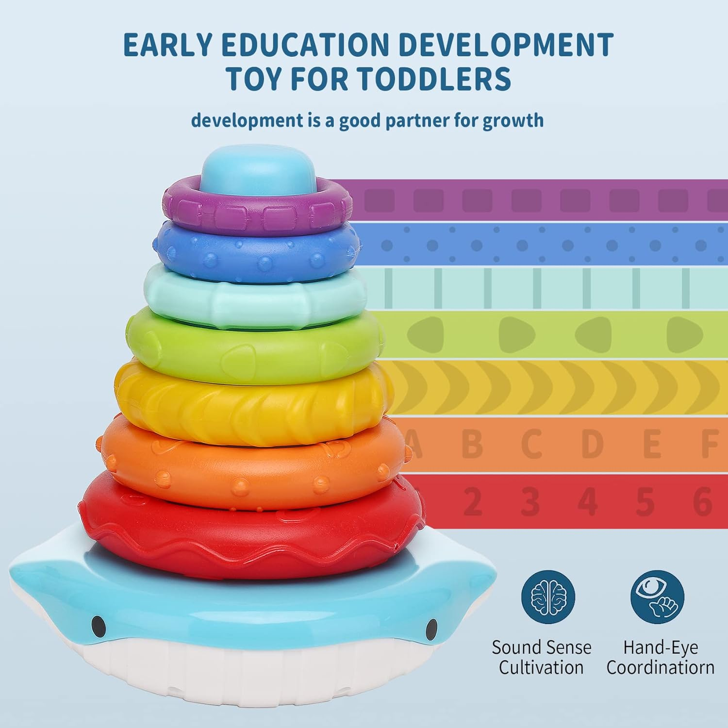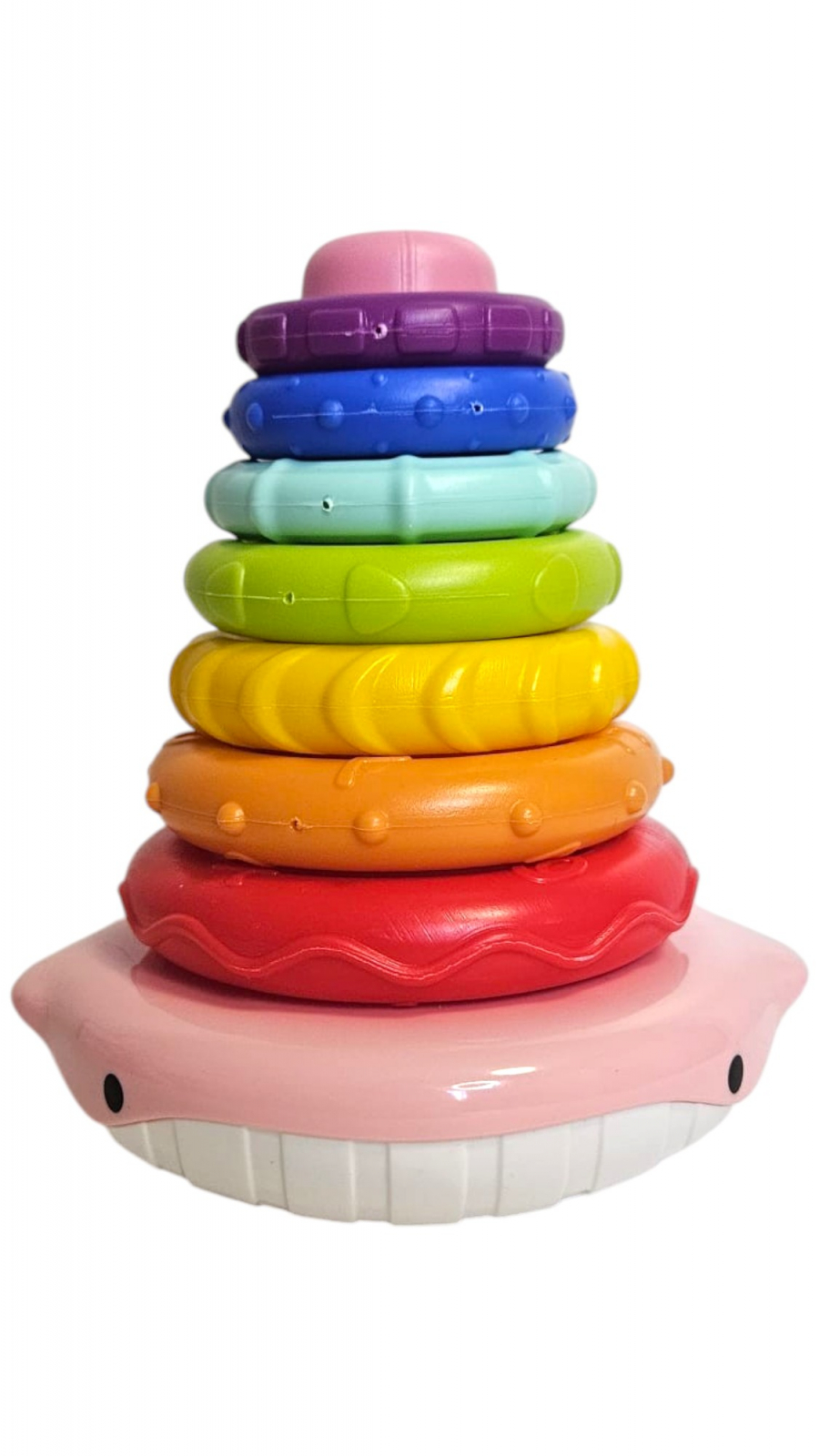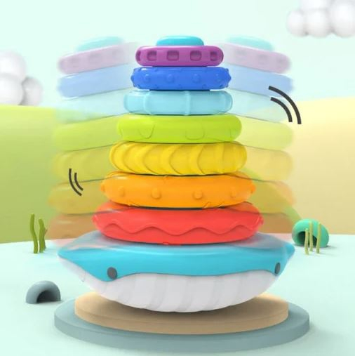 Cu designul său prietenos și culorile vii, Turnul piramidă senzorial „Balena curcubeu” este alegerea ideală pentru a combina distracția cu dezvoltarea armonioasă a bebelușului.