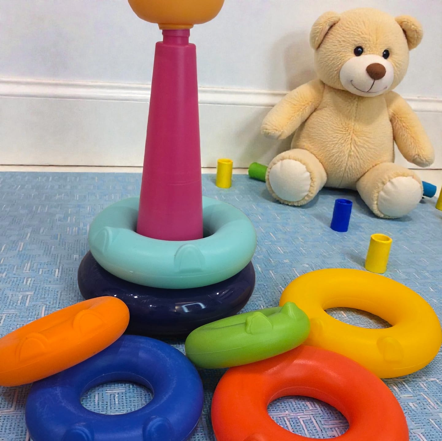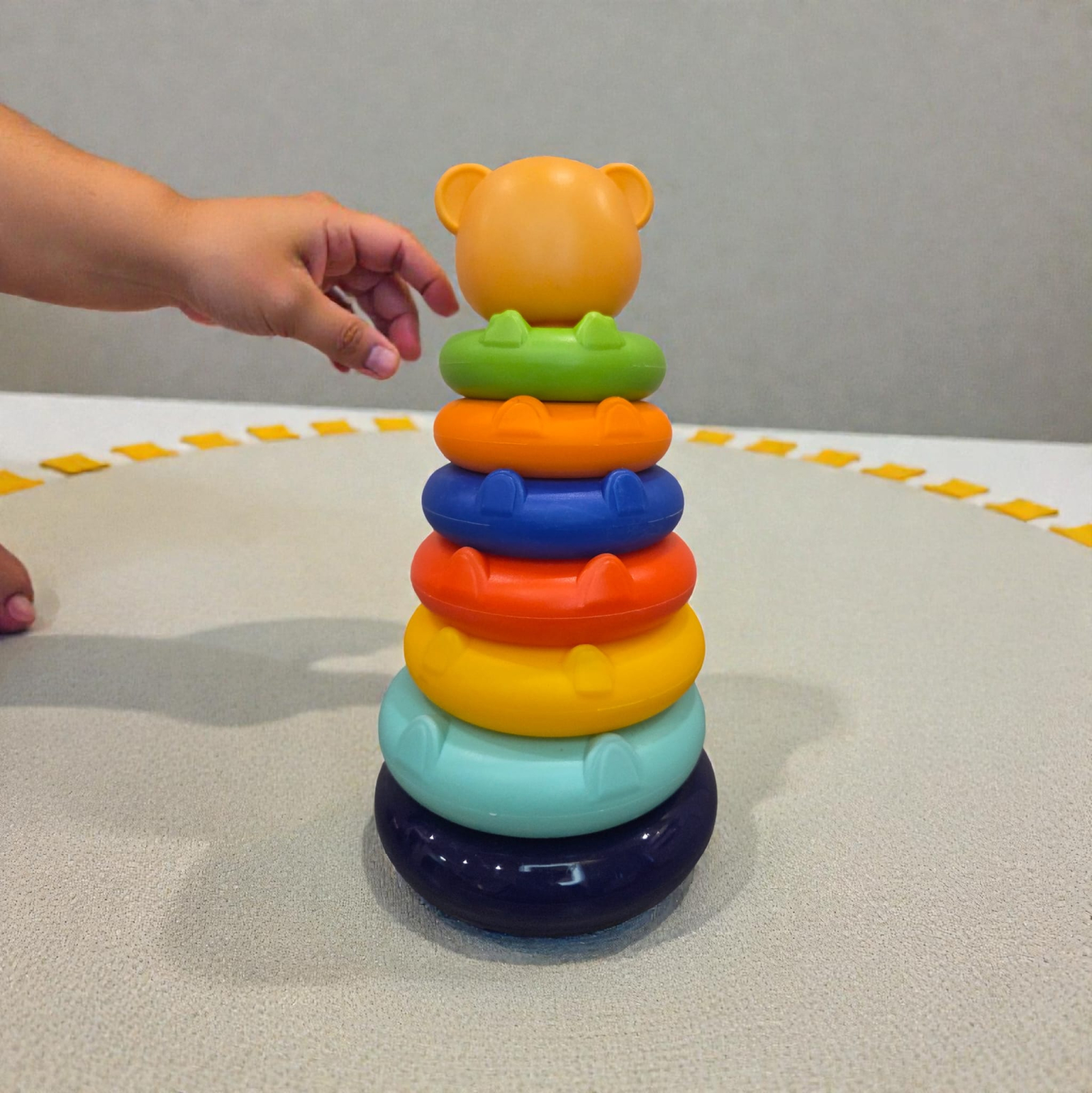 • Dezvoltă coordonarea mână-ochi prin stivuirea și manipularea inelelor